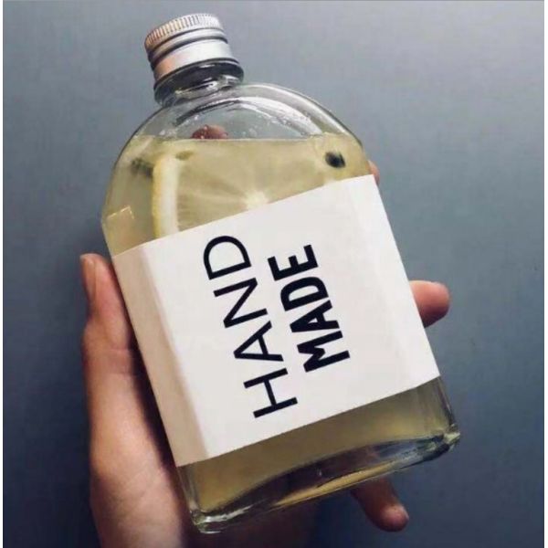 Flat transparent Beverag Glass Bottle for Juice Wine Glass Storage Bottles